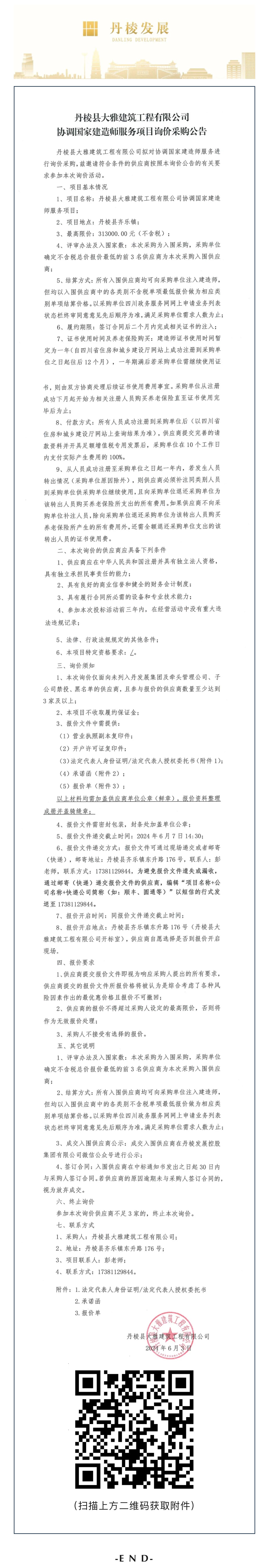 丹棱縣大雅建筑工程有限公司協(xié)調(diào)國(guó)家建造師服務(wù)項(xiàng)目詢(xún)價(jià)采購(gòu)公告