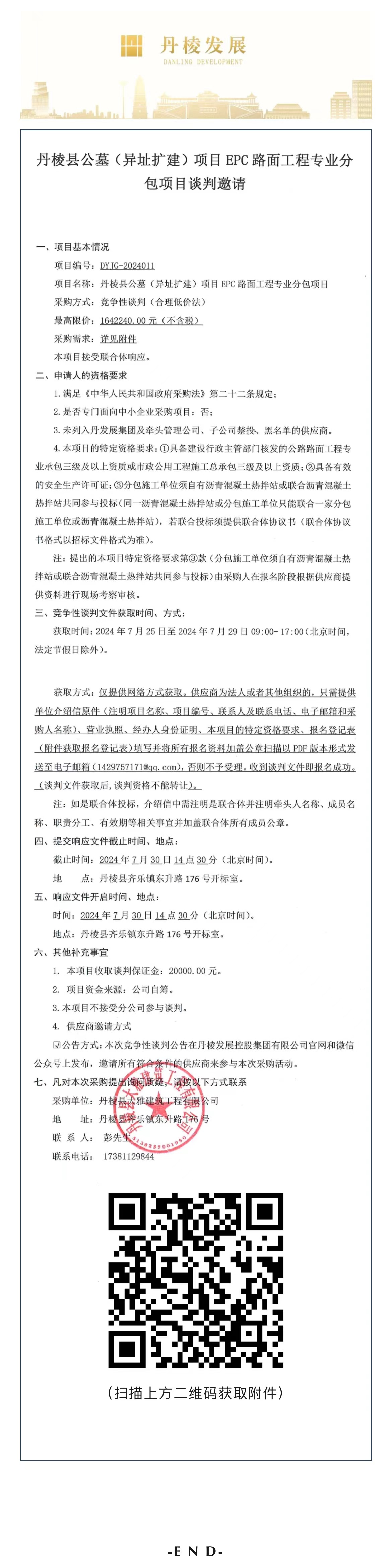 丹棱縣公墓(異址擴(kuò)建)項(xiàng)目EPC路面工程專(zhuān)業(yè)分包項(xiàng)目競(jìng)爭(zhēng)性談判邀請(qǐng)公告