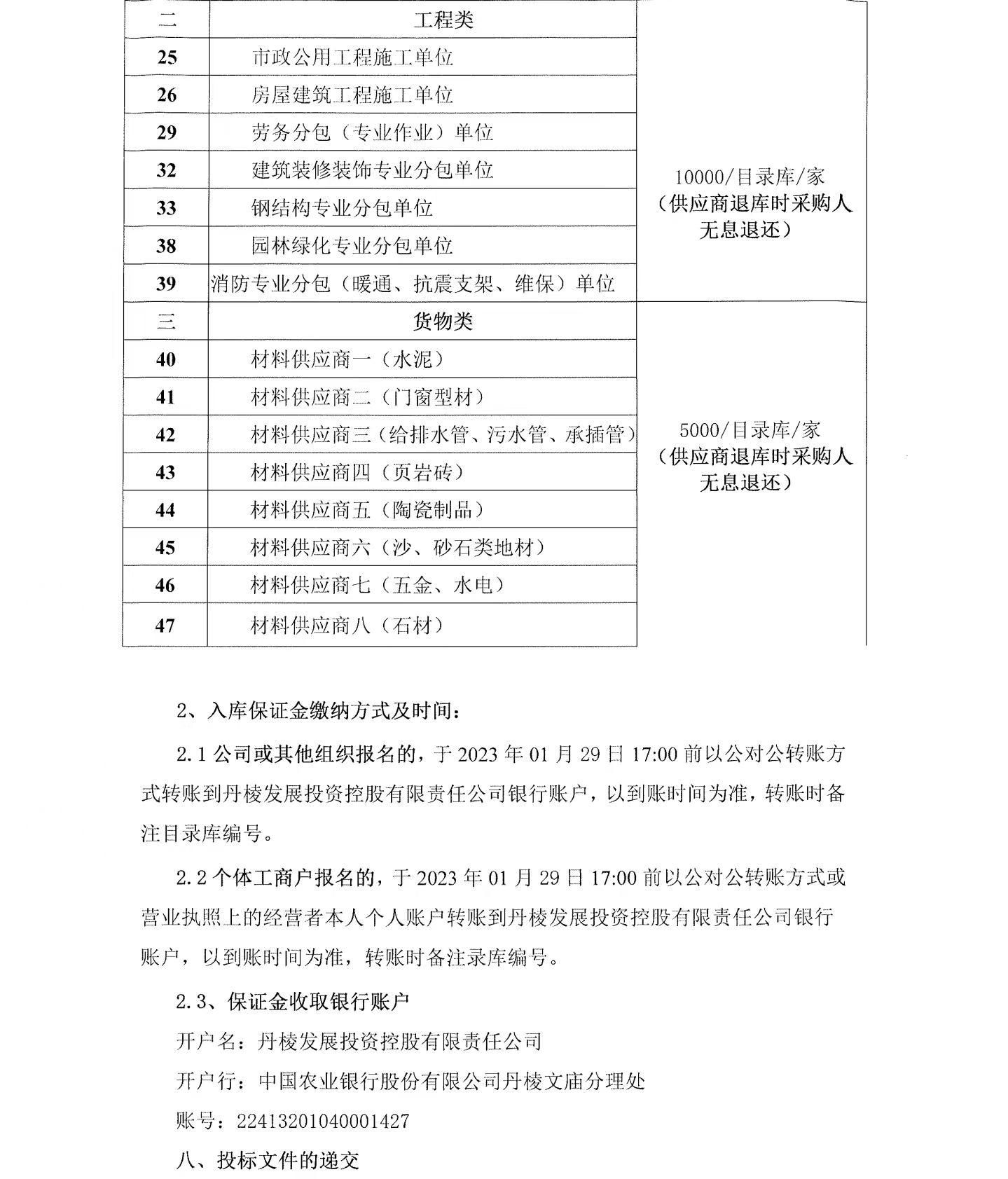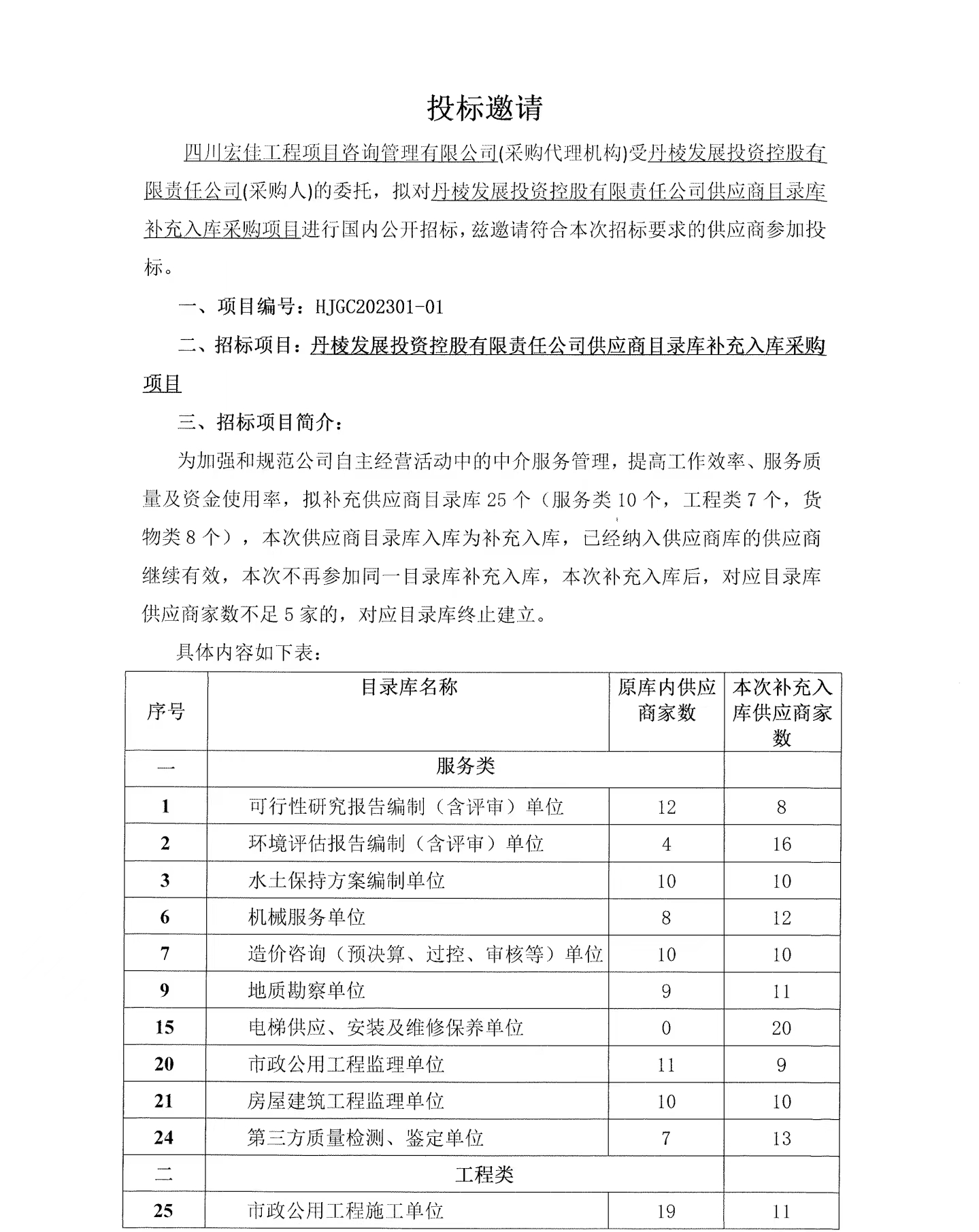 丹棱發(fā)展投資控股有限責(zé)任公司供應(yīng)商目錄庫補(bǔ)充入庫采購項目投標(biāo)邀請公告