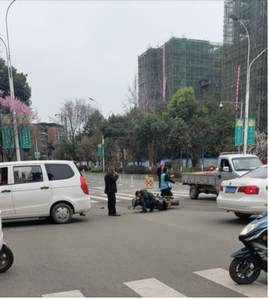 2月26日下午,丹棱縣關帝路與齊樂大道交匯處發(fā)生一起交通事故,丹棱縣城市投資建設有限責任公司交通勸導員黃福均在第一時間撥打“120”并對傷員進行止血和情緒安撫。事故發(fā)生后,黃福均積極協(xié)助當事司機進行事故報警并迅速疏散圍觀群眾、指揮過往車輛有序繞行,有效避免了次生事故的發(fā)生。
